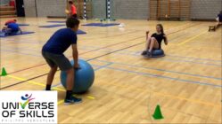 One leg and bounce the button